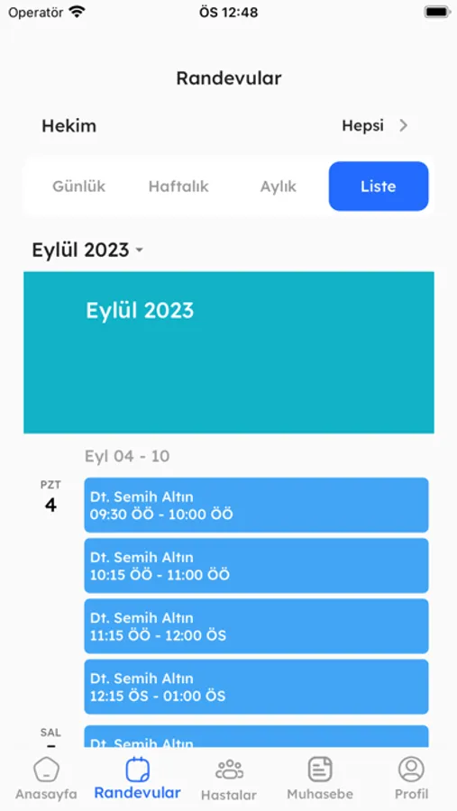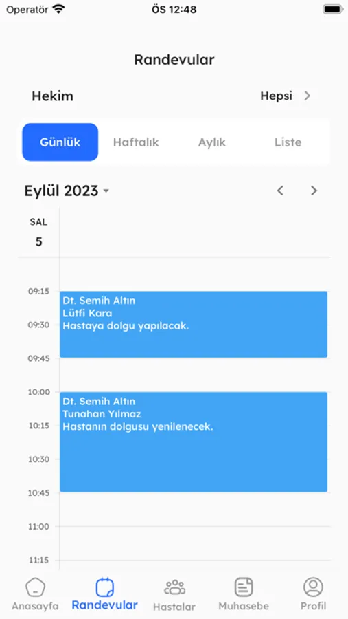 Rezervasyon saati, tarihi, danışan (cari/müşteri) ismi, danışman ismi seçerek anında rezervasyon oluşturabilirsiniz.