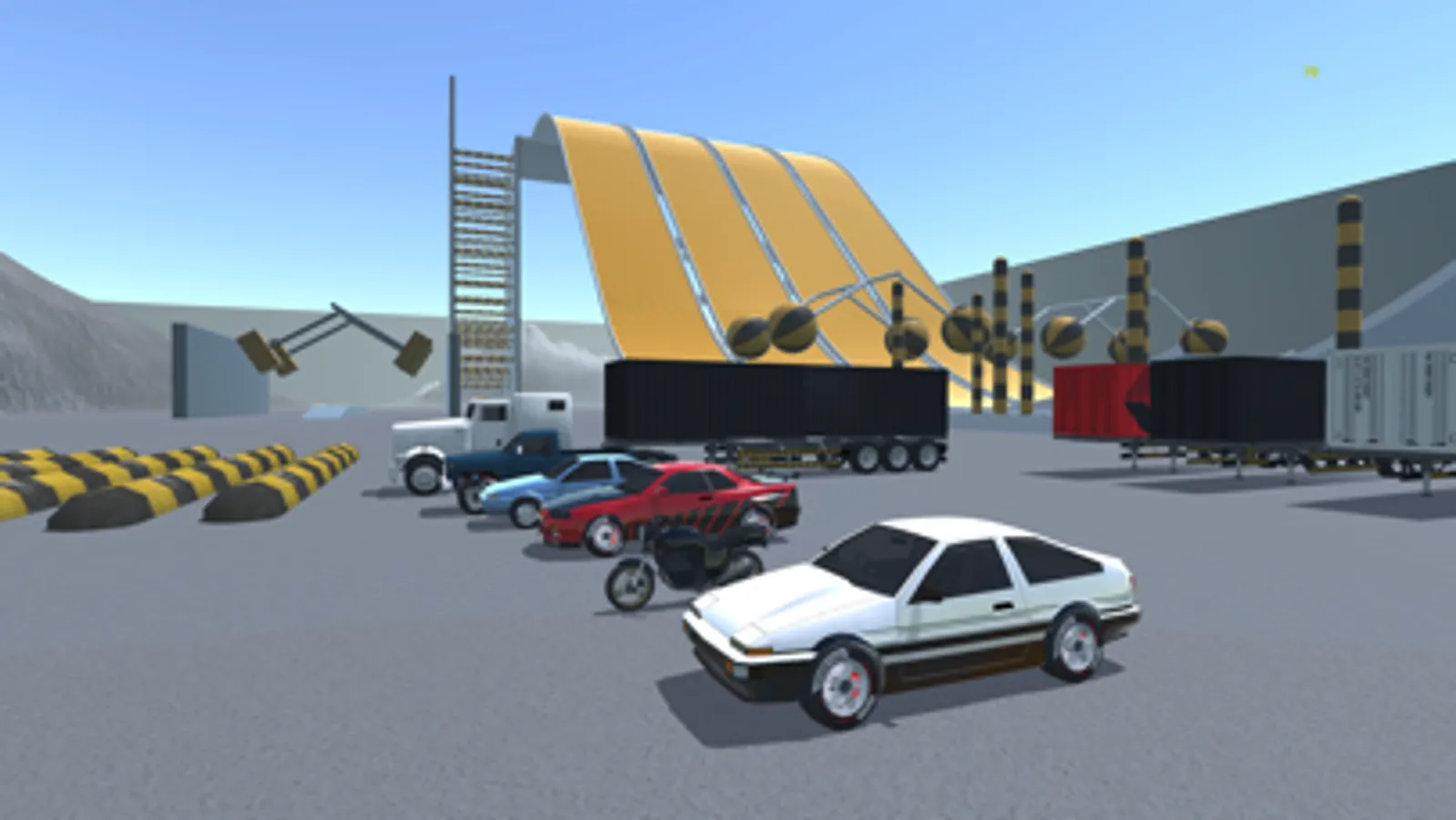 The obstacles and elements for smashing cars that you will find on the map are very diverse: very long ramps where you can make incredible jumps, each of which ends in a different way, perform impressive flips, expose cars to the pressure of hammers or crushers, dodge or crash against rotating balls and sticks, or skip your car through various crushers that you will find, each of which is more dangerous than the previous one.
