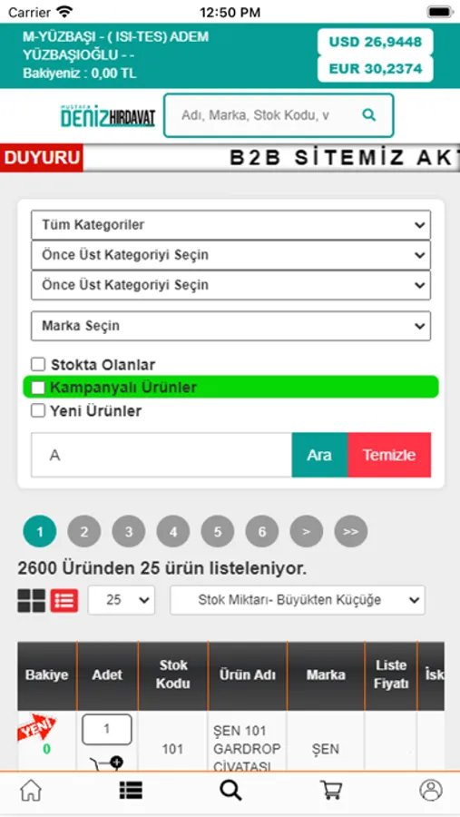 Deniz Hırdavat B2B uygulaması hızlı ara yüzü ve kolay kullanımı ile fark yaratıyor.