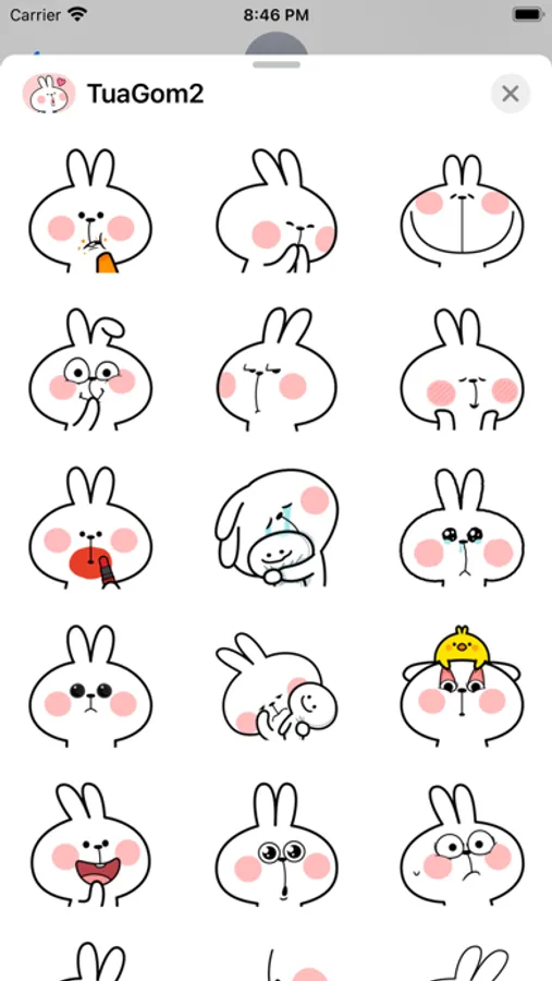 This is TuaGom Cute Rabbit Pack#2 with 117 new amazing stickers for your conversations.