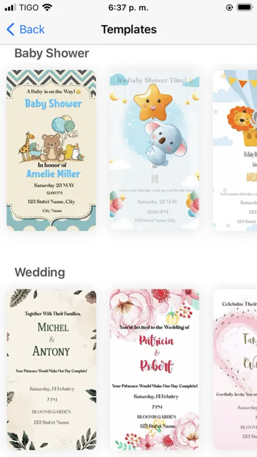 4. Categories for Every Occasion: Easily navigate through different event categories to find the ideal template for your celebration. Explore sections dedicated to birthday parties, weddings, baby showers, first communions, quinceaneras, and more!
