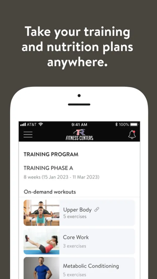 With the TR Fitness App, you will have access to workout programs designed specifically to help you reach your fitness and health goals! You can follow & track your workouts, your nutrition, your lifestyle habits, measurements and results–all with the help of your coach.