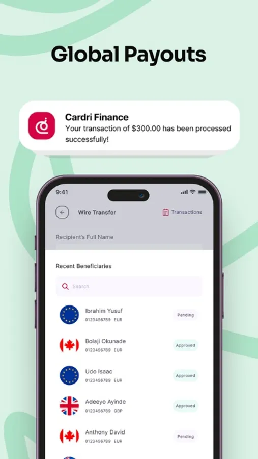 Cardri is an all-in-one digital wallet that facilitates effortless local and cross-border transactions for African Businesses and Individuals. With Cardri, you can easily send and receive payments worldwide, access affordable airtime and data bundles, conveniently pay bills, and explore a wide range of additional features and services.
