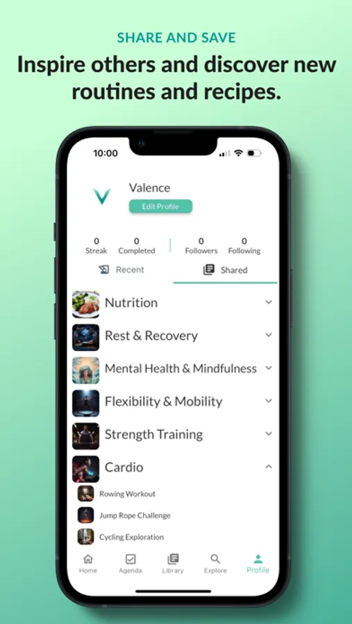 With Valence, you’re not just following; you're leading. Customize your own workouts, design delightful recipes, or maintain a visual food diary. Whatever "fitness" means to you, make it uniquely yours with our user-friendly item creation features.