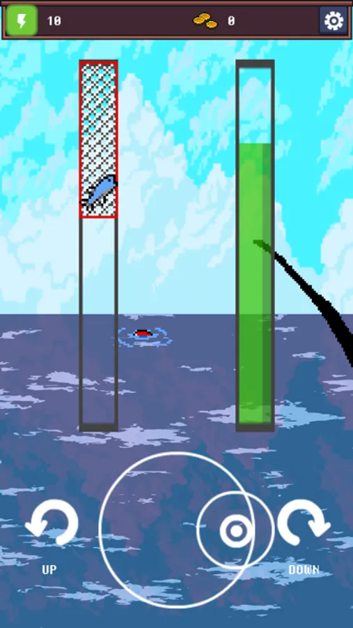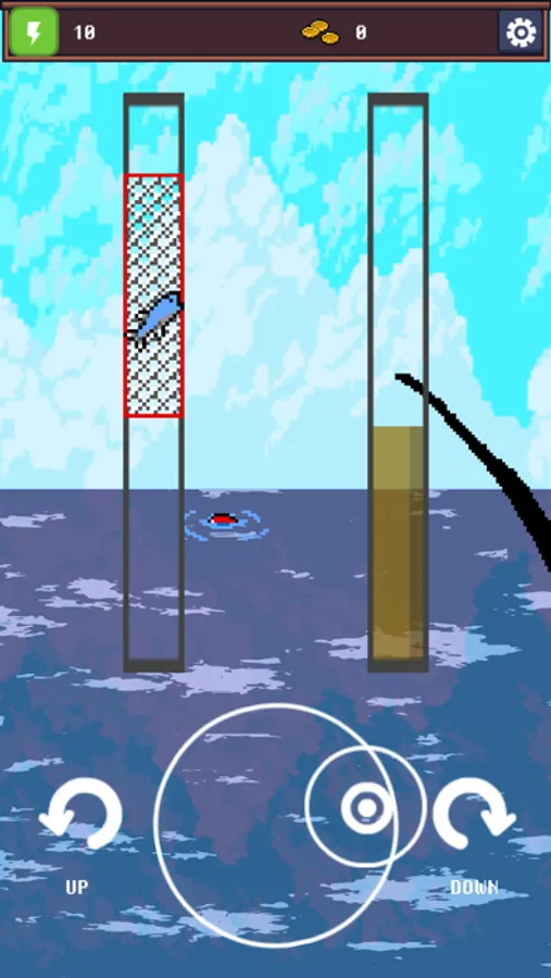 Reel in the fish by keeping it within the net area. Spin left(counter-clockwise) to move the net up, spin right (clockwise) to move the net down.