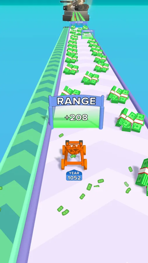 But that's not all! With every 200 years you amass, your catapult undergoes a marvelous evolution, morphing into a formidable war tank! Unlock the full potential of your war machine as you conquer each era. There are gates scattered throughout time, offering you enticing rewards, from boosted fire rates and extended ranges to additional years, months, and days.