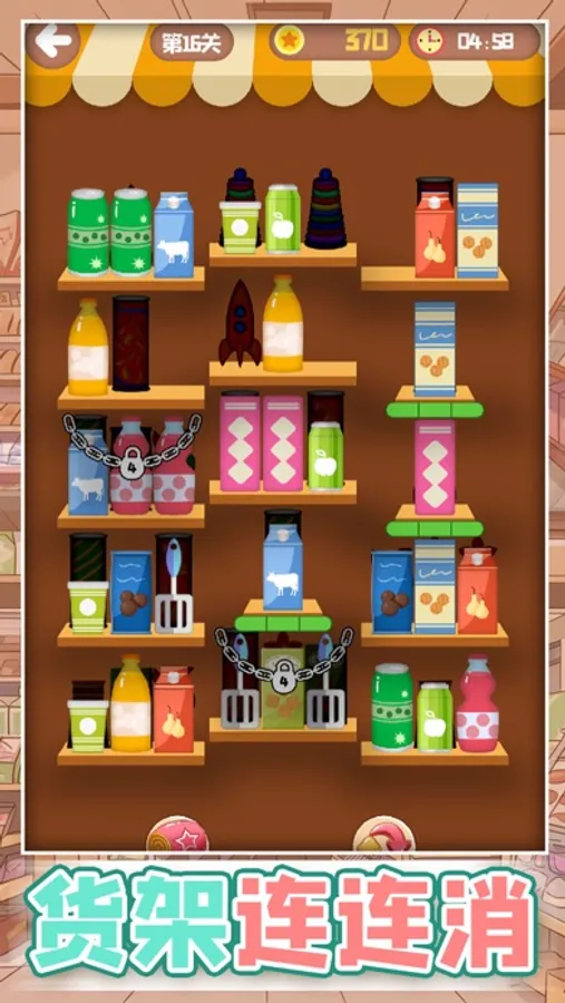这是一款有趣的超市货架三消游戏,游戏中需要将三个相同的物品放置到一起即可消除,游戏有多种道具可以帮助通关,游戏关卡众多难度也会越来越高,赶快来挑战一下吧。