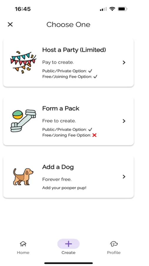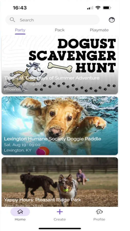· PACK - Join groups and gatherings created by other dog owners for recreation or socialization purposes. Or form your own pack!