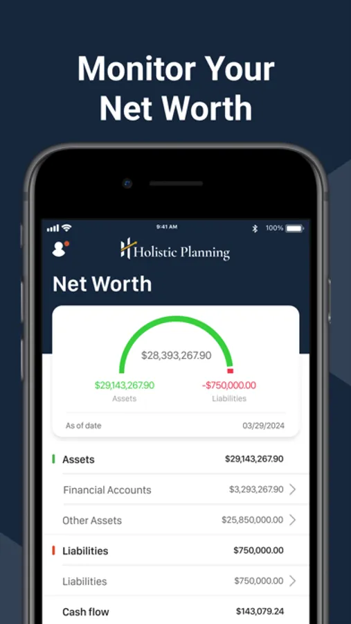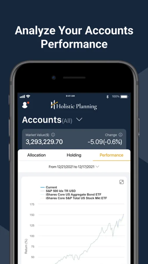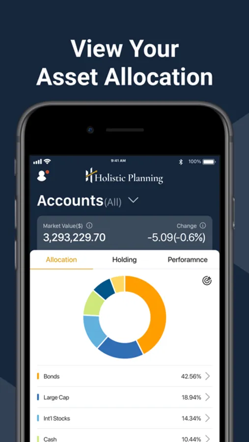 HolisticView provides a clear and simple way for you to view your personal balance sheet from anywhere at any time. See the most recent trades and transactions on your accounts, current portfolio holding, performance, cost basis, projected income, and more.