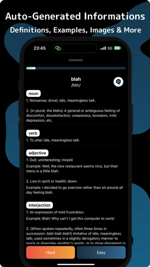 Simply type in the word you want to learn, and WordWize does the rest! It automatically populates the flashcard with essential information, including definitions, pronunciations, synonyms, example sentences, and even related images. No more time-consuming manual entry—learning English vocabulary has never been this convenient!