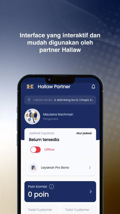 Hallaw Partner adalah aplikasi hukum online by Hallaw, dirancang khusus untuk memudahkan Anda sebagai partner dan advokat dalam menyediakan layanan hukum secara efisien dan praktis. Dengan menggunakan Hallaw Partner, Anda dapat terhubung dengan klien potensial, mengatur jadwal pertemuan, dan memberikan konsultasi hukum melalui platform digital yang aman dan terpercaya.
