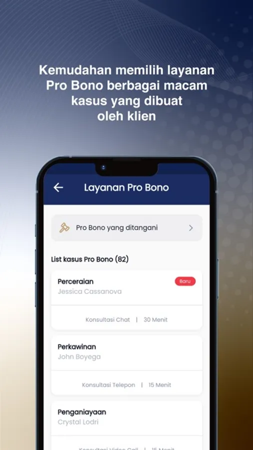 Hallaw Partner menawarkan platform konsultasi hukum online yang efisien dan praktis. Melalui fitur video call dan chat, Anda dapat memberikan nasihat hukum kepada klien secara langsung, menjawab pertanyaan mereka, dan memberikan panduan yang diperlukan, tanpa harus bertemu secara fisik. Ini memberikan fleksibilitas yang tinggi dan memungkinkan Anda untuk memberikan pelayanan hukum yang optimal.