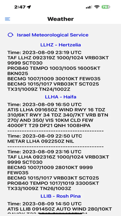* Weather information AITS / METAR / TAF of Israel airports for pilots
