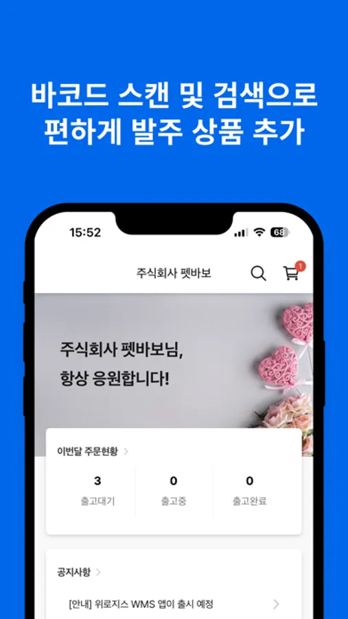위로지스 WMS는 거래처 발주 관리를 위한 앱 입니다.