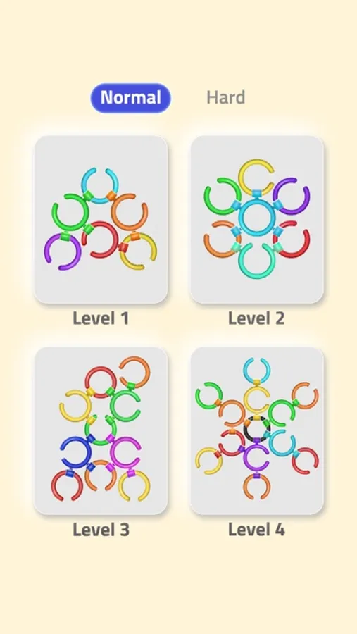 This is an exciting puzzle game where the player needs to solve different challenges by rotating the rings to find the gap.