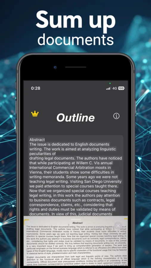 Our app goes beyond regular text input! Utilize your device's camera to capture text from images, posters, or printed materials, and let Outline turn it into a concise summary.