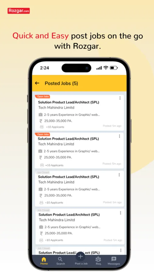 The Rozgar Recruit mobile app is your all-in-one solution for seamless job management. Post job openings effortlessly, streamline the application process, and efficiently manage job applications in one convenient platform. Stay organised with intuitive features for tracking and scheduling interviews. Whether you're an employer or job seeker, Rozgar Recruit simplifies the job search and hiring process, ensuring a smooth and efficient experience from start to finish. Download the app today and unlock a world of job opportunities at your fingertips.