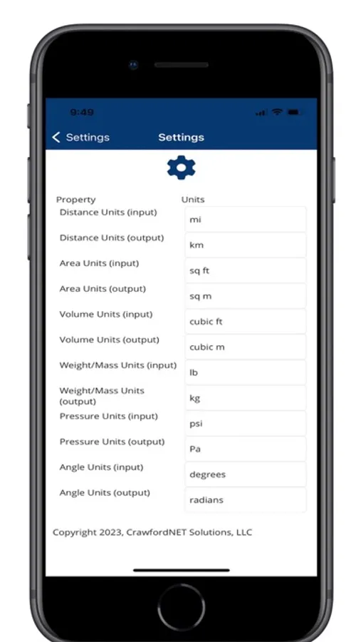 This application is a simple utility providing some basic conversion functions for distance, area, volume, pressure and weight/mass. Save default units for conversion operations to speedily convert values without needing to constantly set the units values for the operation.
