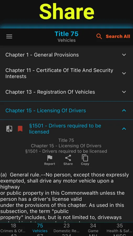 - SHARE: Share content via text, email, social media, and other methods permitted by your device