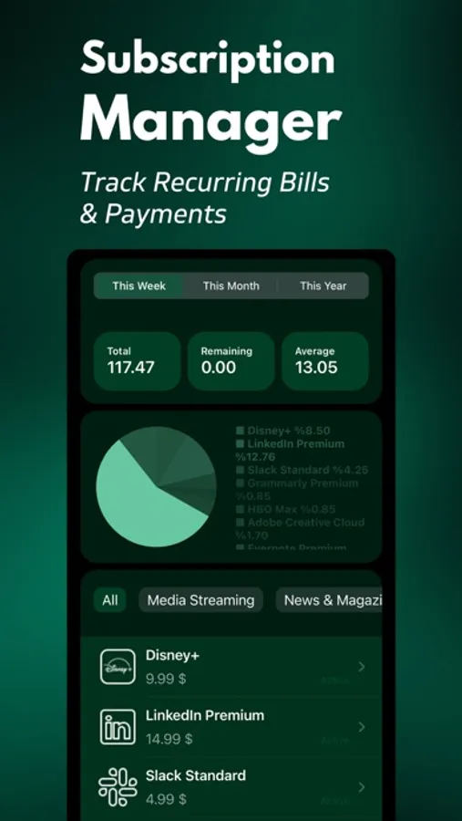 Subscription Manager is a powerful and user-friendly app designed to simplify your financial life by effortlessly tracking your subscriptions and recurring bills. Say goodbye to the hassle of manually keeping tabs on your bills, as Subscription Manager does all the heavy lifting for you, providing valuable insights into your financial commitments.