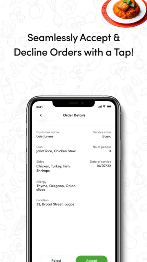 Order Preview: Chefs get to preview each order before accepting, ensuring they only accept orders that they have ability to fulfill.