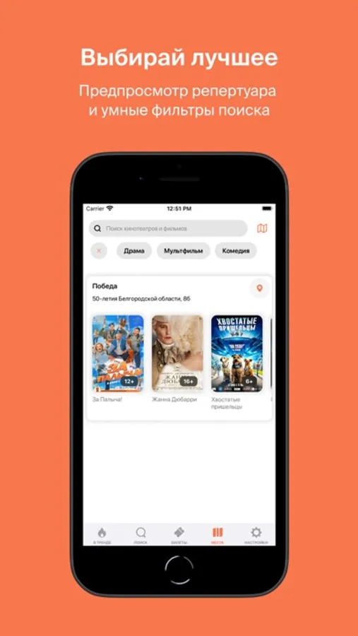 • Здесь ты можешь посмотреть трейлеры, афишу и самое полное расписание