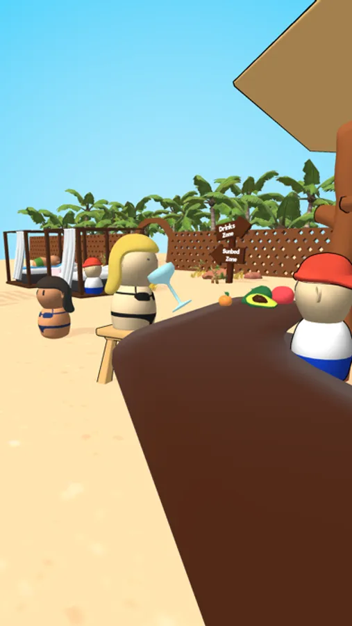 Set up your cozy sunbeds and umbrellas to create the perfect relaxation spot for your customers. Take orders and serve refreshing drinks to keep them cool and happy. After a cold drink, enjoy the party!