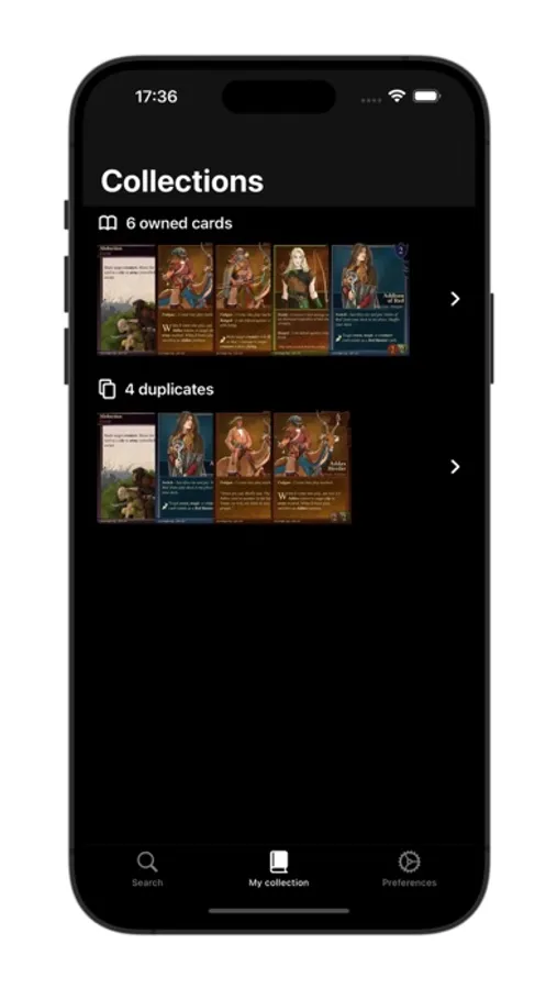 3. Collections: Your personal collection hub. Effortlessly manage the cards you own and identify duplicates. Whether for enjoyment or preparing trades, this personal space keeps your collection neatly organized.