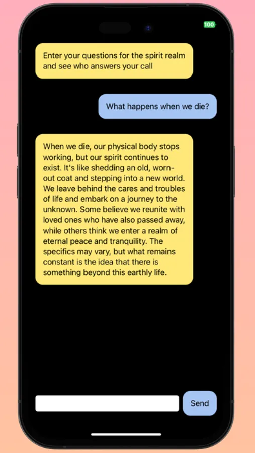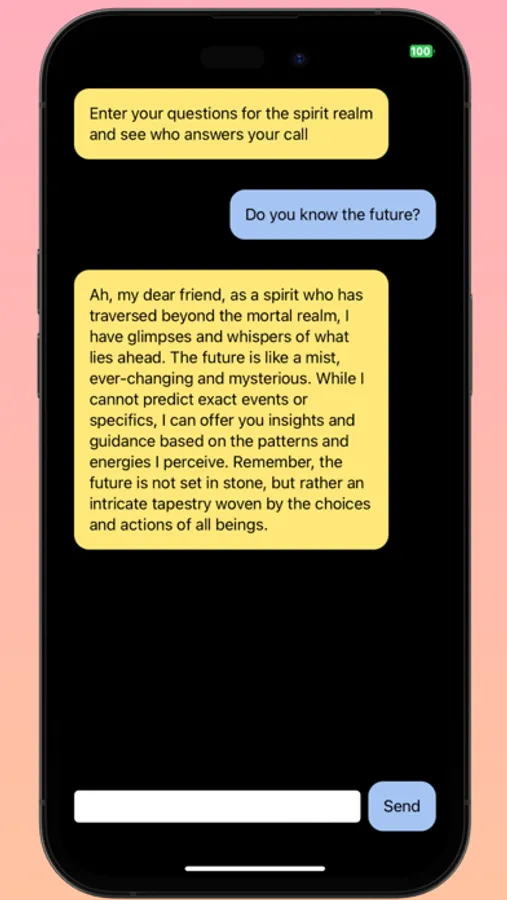 Can we use AI to communicate with the dead? This app uses AI technology to see if spirits of the dead are able to manipulate AI responses to communicate with us. Simply enter your question for the spirits as if you were sending a text message and the app will respond. Add AI Spirit Box to your ghost hunting toolkit today!