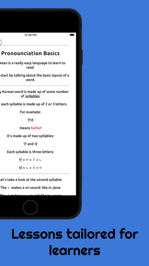 - Simple interface: HanguLingo steers away from addictive gamification and towards an interface that anyone can understand and use from the get-go.