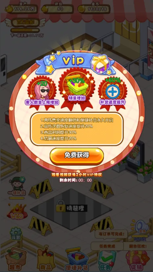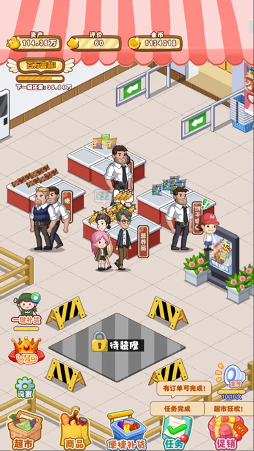 进货,上架,装饰店铺然后客人买买买!攻略只能出在进货打个时间差,然后上架赚金币多少这些。 不氪金也能玩,主要是进货上架忙不停,很能消磨时间。画风可爱