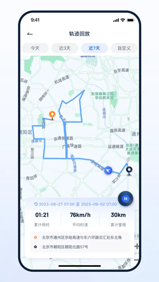 历史轨迹:支持轨迹回放,方便查询历史轨迹记录