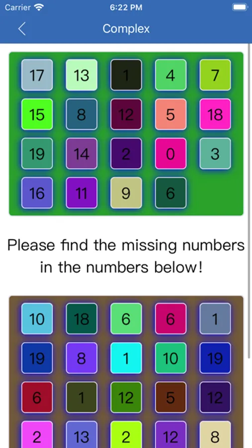 Carefully observe what is missing from the numbers above, and then find the missing numbers from the numbers below! During this period, the system will record your time to challenge your fastest speed!