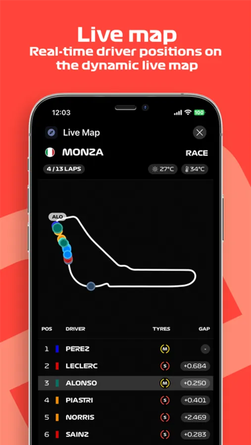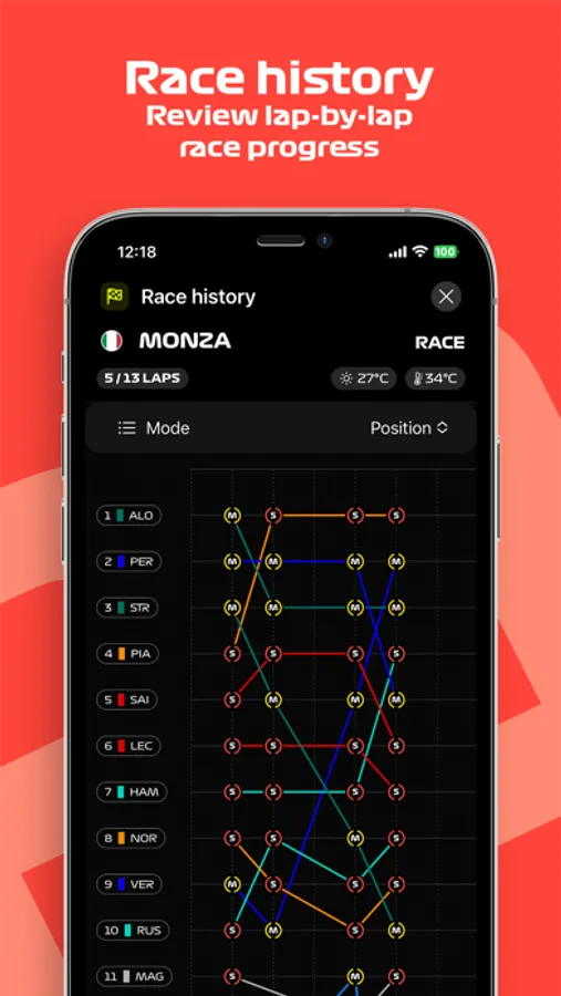 - Race History: Review and track the progress of each driver lap by lap, gaining valuable insights into race dynamics and strategies.