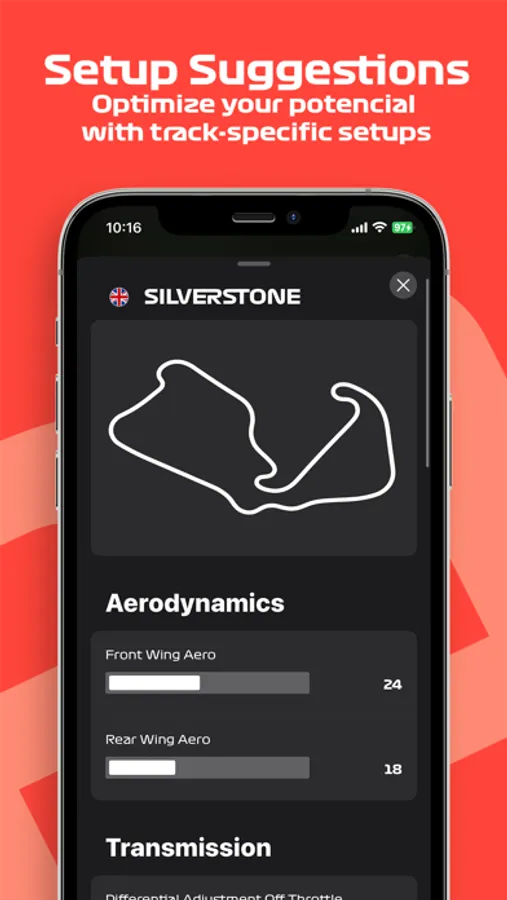 - Setup Suggestions: Optimize your F1 racing potencial with track-specific setup recommendations.