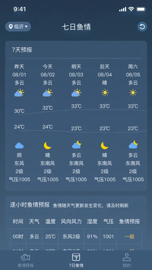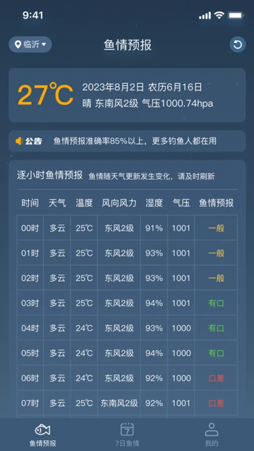 精准定位到钓点,展示7天逐小时,鱼情,准确率85%以上。