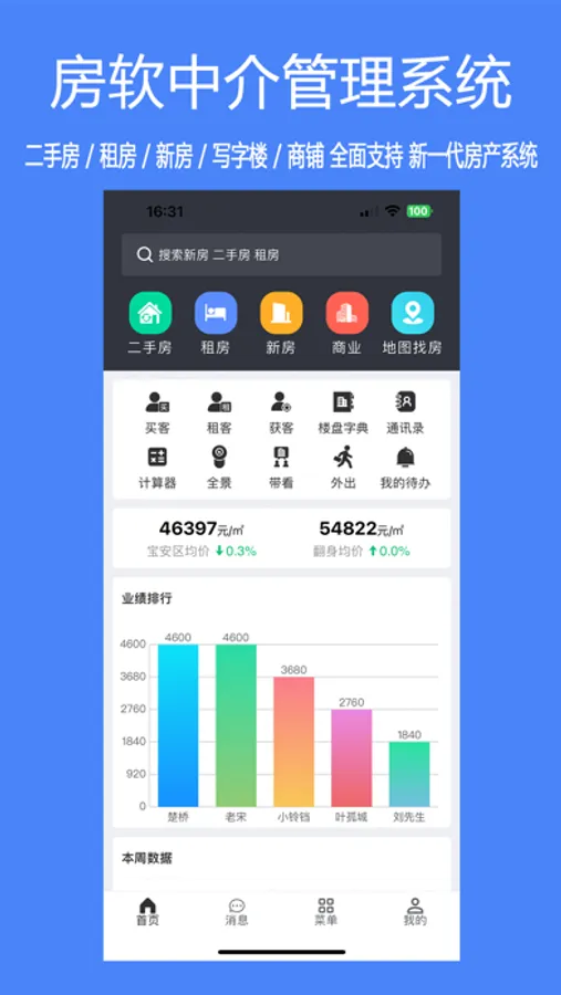 集成了多种房源业务类型,包括二手房、租房、商业办公、写字楼、别墅等,能够满足不同企业的需求。