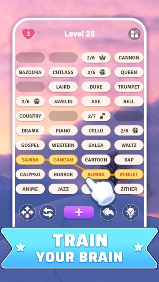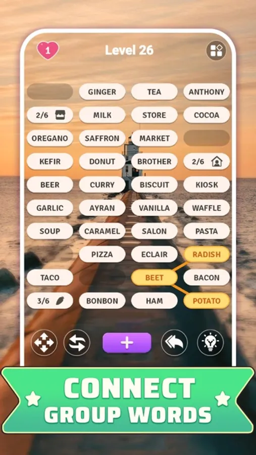 Words Sort is a word puzzle that challenges you to categorize words and merge them together into one. You must carefully think about the categories and the connections in order to complete each level.