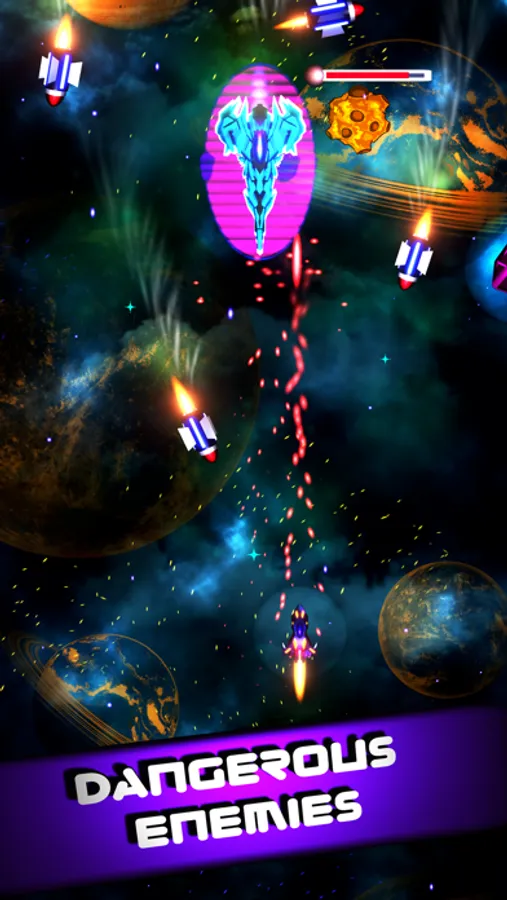 You must guide your spaceship through dangerous asteroid fields and avoid comets and aliens that try to destroy you! At the end of each galaxy you must destroy the boss that awaits!