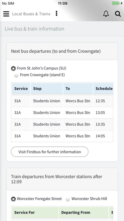 •Get a quick link to the Students’ Union to find out about news and events