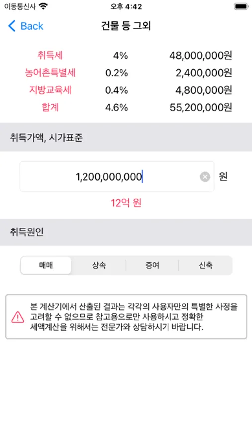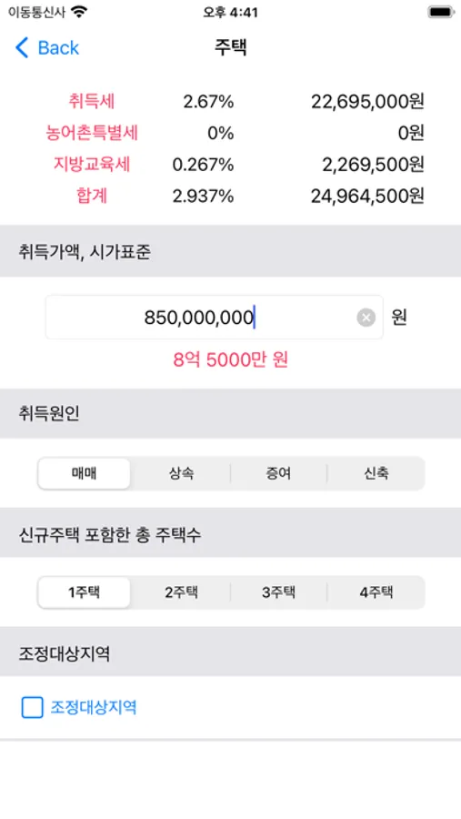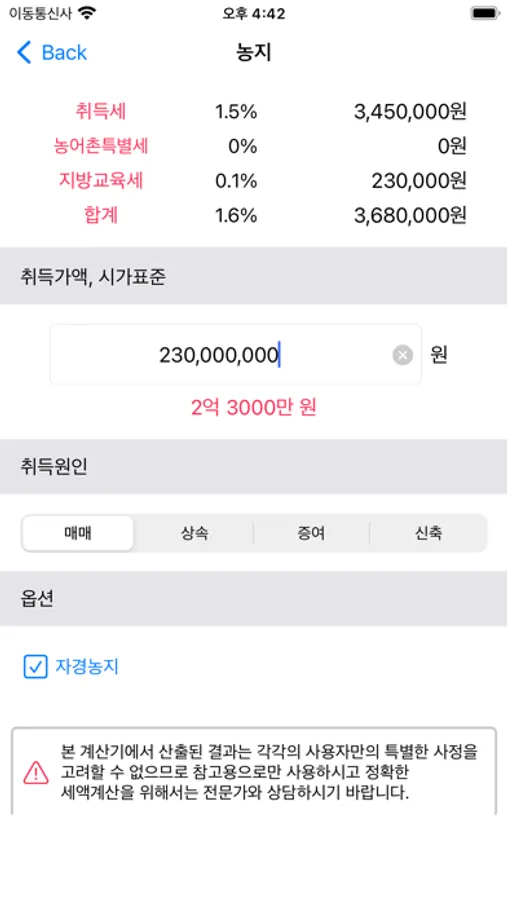 취득세 중 부동산의 취득과 관련하여 간단하게 계산할 수 있는 기능