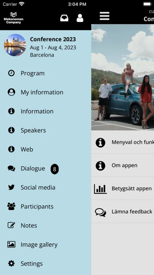 Mekonomen Company event app is designed to inform about the Mekonomen Company´s meetings and events. In the app you have all the information collected in your phone before, during and after the event. The application can view several event at the same time, choose the event you are attending.