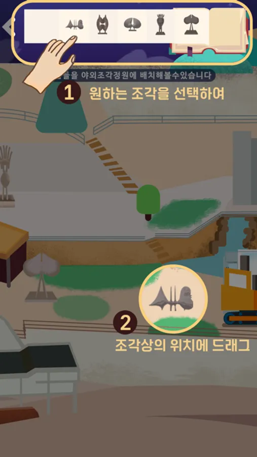 야외 조각정원의 조각작품들을 수집하여 미술관을 완성 시킬수 있습니다.