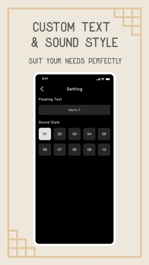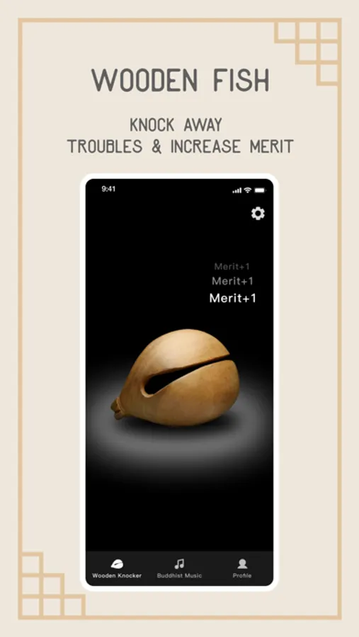 3. Wooden Fish - After tapping the wooden fish, you can see "merit +1". You can customize the displayed text to suit your individual needs. It also helps relieve stress and anxiety in a Buddhist way.