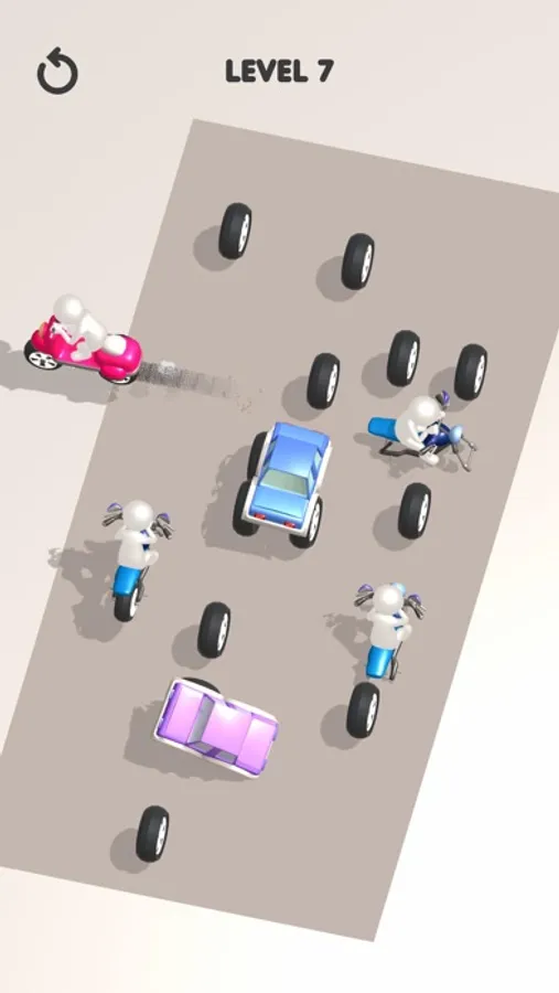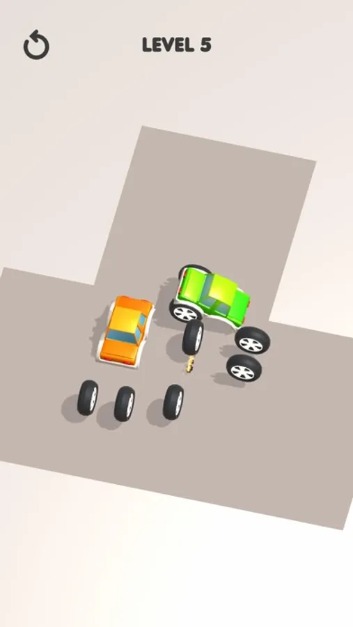 In this charming game, cars without wheels are waiting to escape the parking lot, and you're the puzzle master to help them! Simply swipe to send the wheels rolling in the right direction. When each car gets its wheels, they come to life and drive out of the parking spot. Can you guide all the cars to victory and unlock the next exciting level?