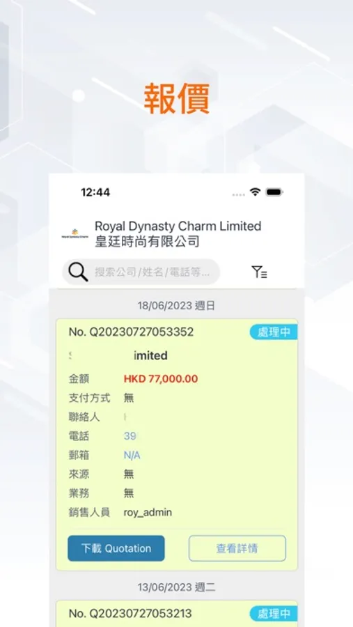 此Apps提供給不同的管理者使用。集合了報價管理、發票管理、客戶管理和數據分析於一身,幫助便捷管理業務,提高管理效率,為客戶提供更高質素的服務。