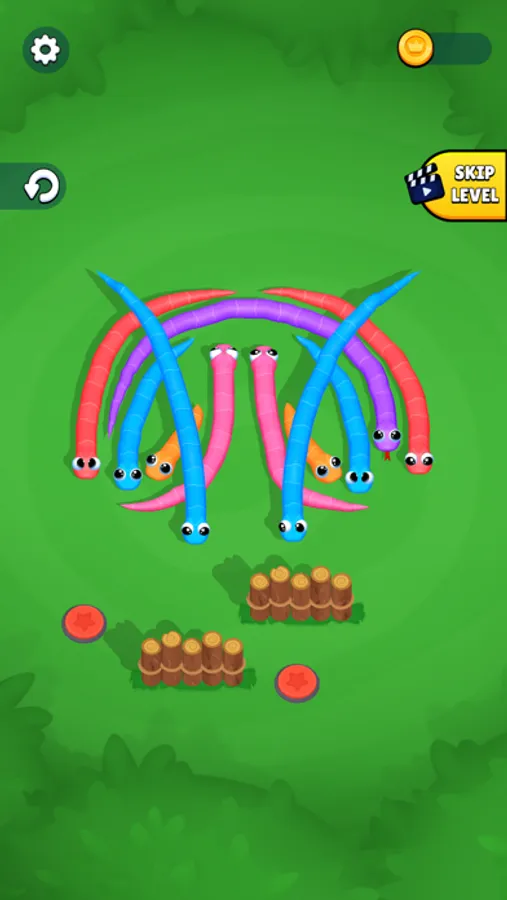 Our sorting game will tangle you up with its gripping levels! Unlike in any other sort-puzzle, deciphering the snakes' mysterious course is the main challenge here. They'll slither around, block paths, and coil themselves up in knot-tying ways. Get the snakes sorted and untie every knot by guiding them one by one. Play your moves right and keep them from bumping into each other to solve the sort-puzzle!