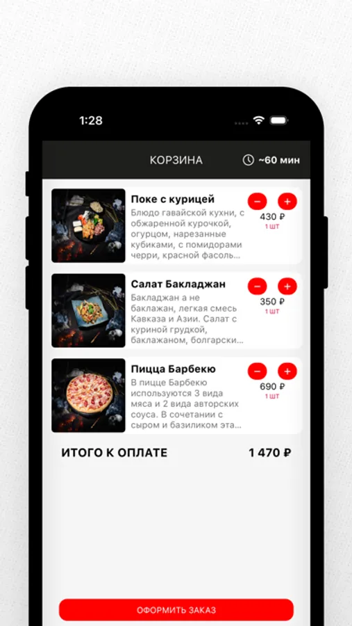 Заказывай блюда и напитки в пару кликов. Оплата при получении заказа.