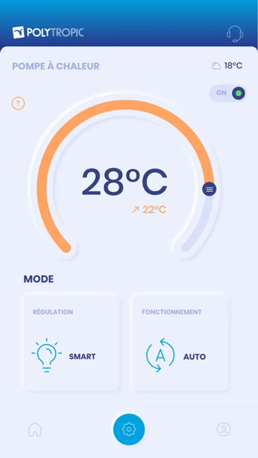 It allows remote control of the heat pump via a smartphone or tablet thanks to an intuitive interface: status of the machine, water temperatures, outside temperature, operation of the filtration pump, heating setpoint temperature, choice of operating mode, alerts, programming of operating ranges...