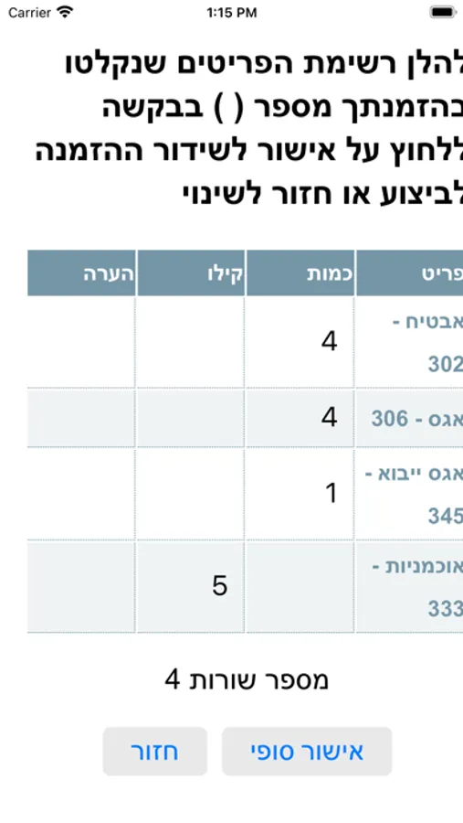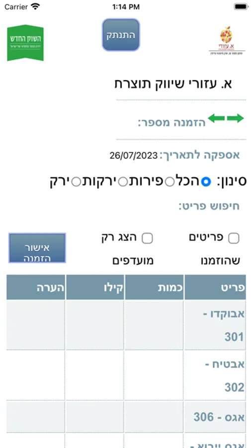 א.עזורי שיווק תוצרת חקלאית - הזמנות מקוונות - אפליקציית הזמנות פנימיות ללקוחות של א.עזורי שיווק תוצרת חקלאית